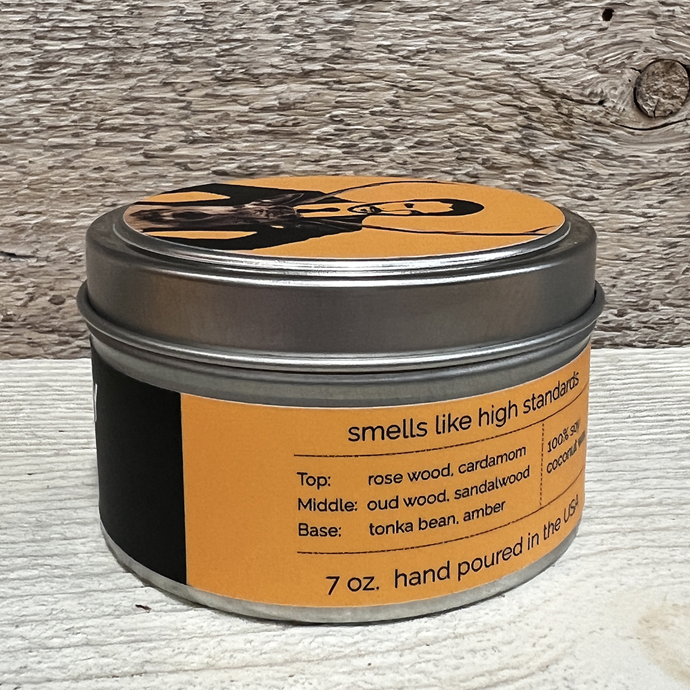 This little candle is the perfect gift for your friends and neighbors to prove how sophisticated you are.  'Tommy Boy' smells like high expectations!  Top notes of rose wood and cardamom, followed by rare oud wood, sandalwood, and vetiver then finishing with a flourish of tonka bean and amber.