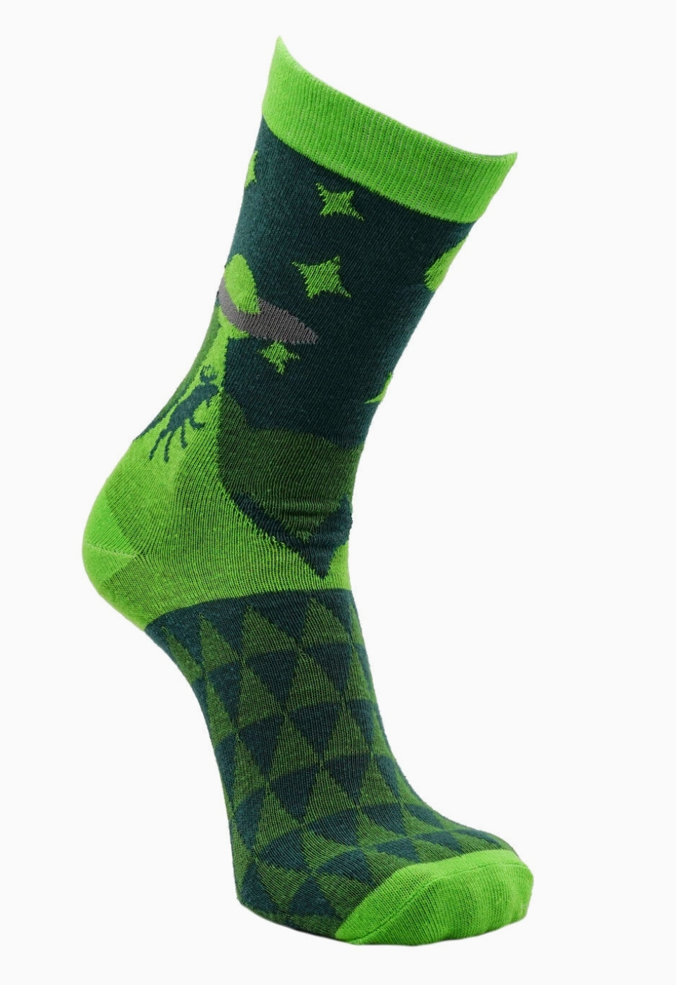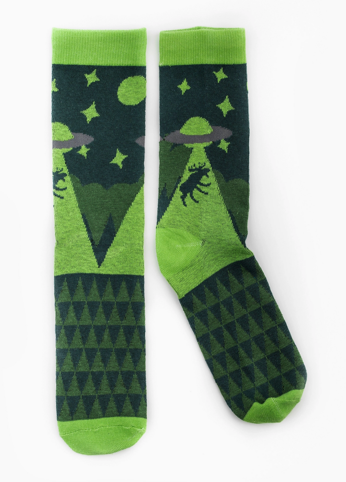 Take me to your leader! These socks will brighten your day and remind us that we are just all creatures living on one strange rock.