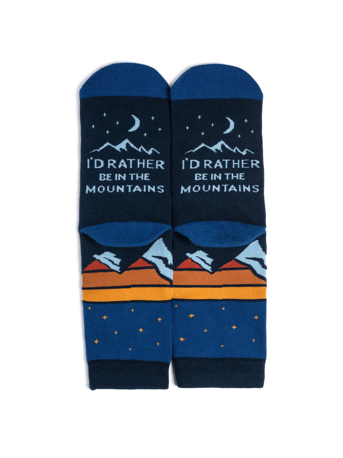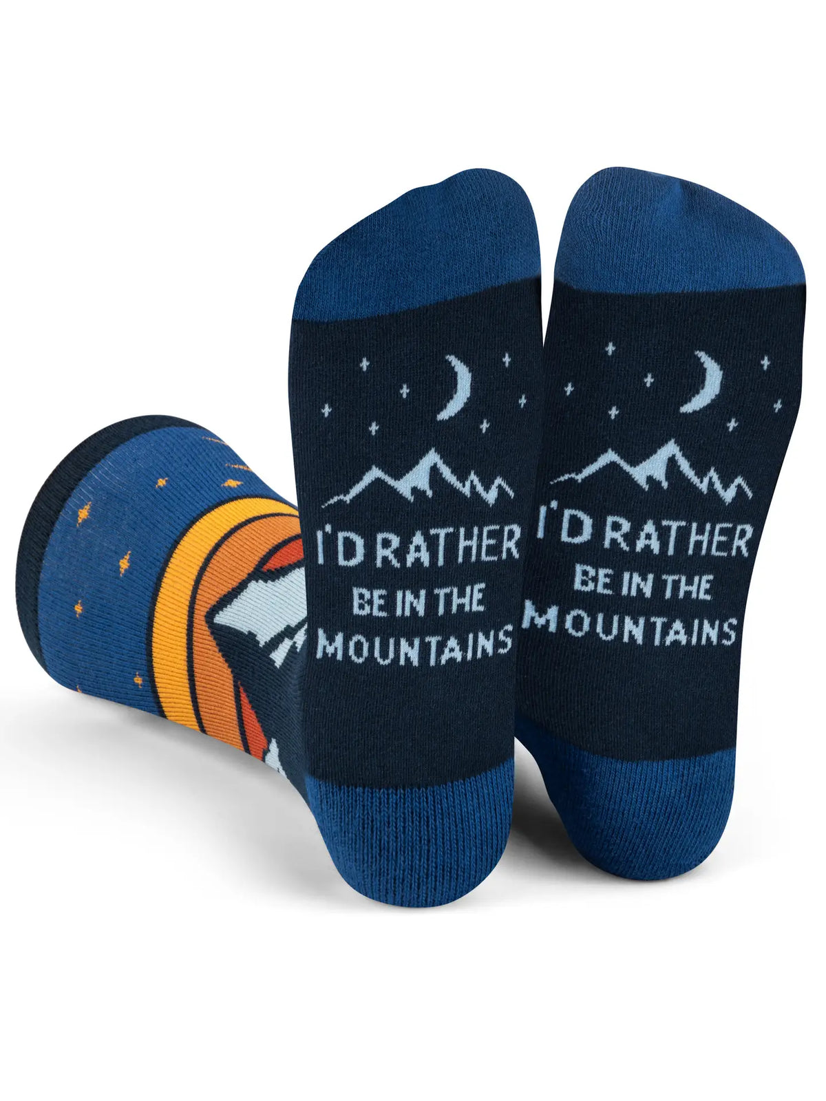 You'd rather be in the mountains. Say it with socks! These fun socks will peak the interest of any outdoorsman. Plus, they're perfect for any mountain adventure, such as hiking, biking, camping, rock climbing, skiing and more.
