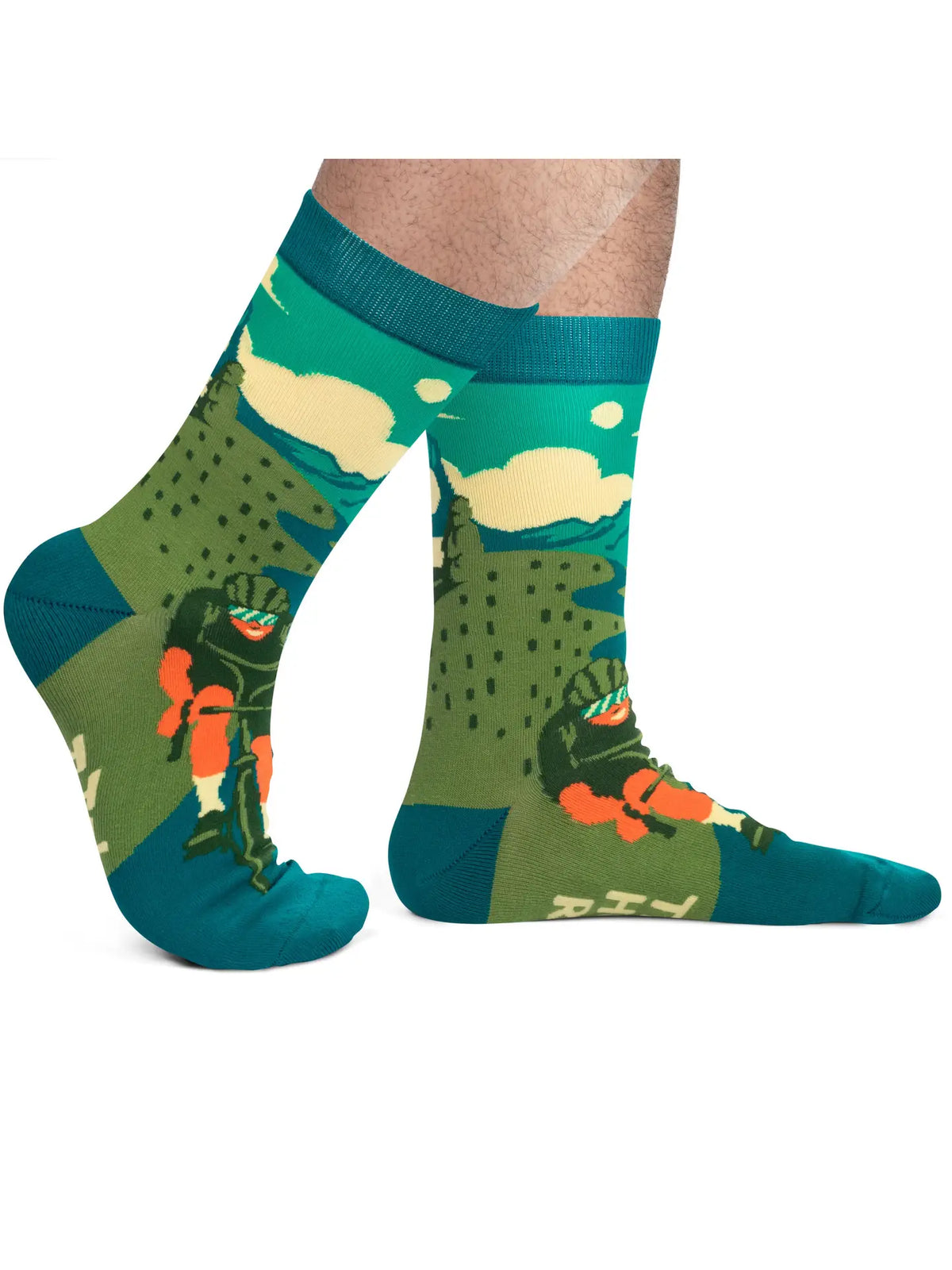 - These novelty socks were inspired by the year of social distancing we all had to face thanks to Covid-19, and they’re a great way to commemorate that time in our lives with some humor. They feature an original illustration of a forest scene, complete with a rare Bigfoot sighting. The bottom of the socks include a hidden message: “Social Distancing Champion”.