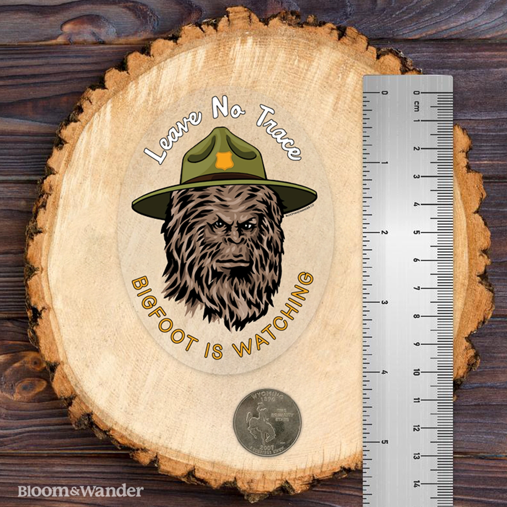 Bigfoot is ALWAYS watching... Don't trash Bigfoot's home, or you'll have to explain yourself to him... This Bigfoot sticker is for the Bigfoot-Believing conservationist.