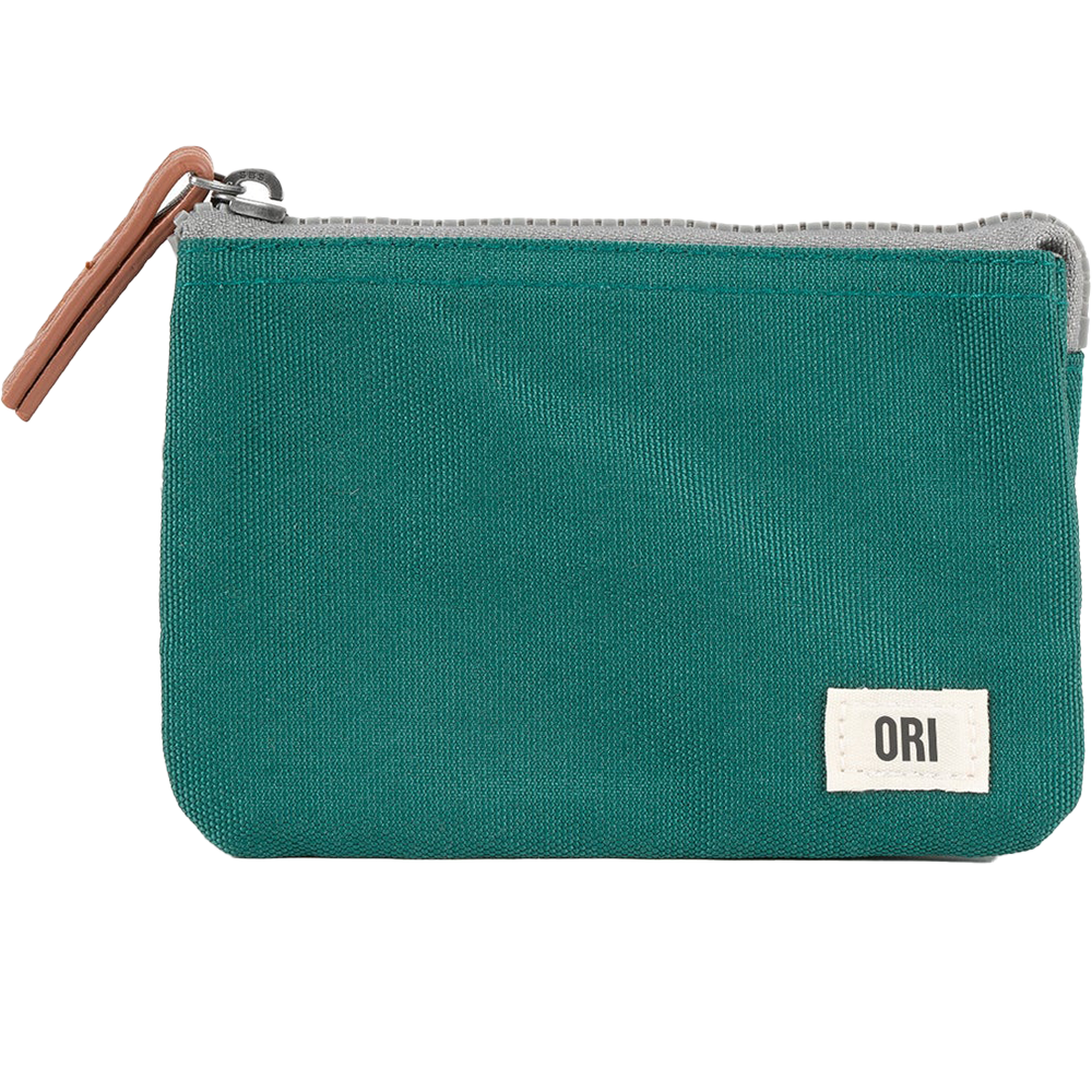 Made from recycled materials, the Carnaby is designed to keep your money, cards, and valuables organized. With three sections all tucked away under one main, secure zip. Versatile and durable, this little wallet is the perfect partner for any ORI London bag. Weather-resistant, durable, lightweight and comes in recycled Nylon and Canvas materials. Size: 5.5in x 3.7in x 1.9in